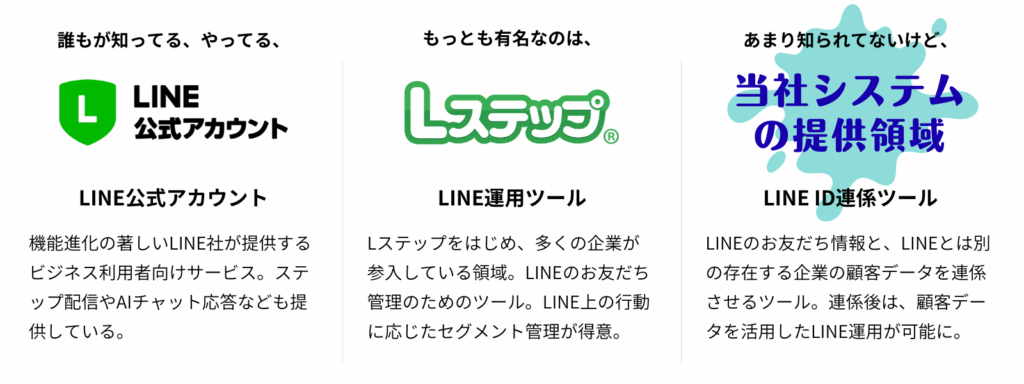 LINE公式アカウントは、LINE ID連係を行うことで、外部サーバーやデータベースを前提にした「本物のアプリ」が低コストで実現できます。それは、Lステップに代表されるLINE運用ツールのような「LINE内完結」とは異なるレイヤーです。